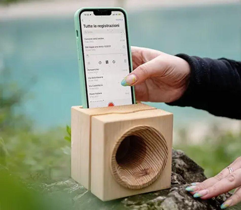 Vaia Cube è un amplificatore naturale in legno di abete rosso, lo stesso usato dai maestri liutai. Ogni pezzo nasce dal recupero degli alberi abbattuti dalla tempesta Vaia del 2018 e racconta una storia di rinascita e rispetto per la natura. Lavorato a mano da artigiani locali, ogni Cube è unico: le sue venature, le linee e i segni del legno ne fanno un oggetto autentico e irripetibile. Senza bisogno di cavi o energia, amplifica la musica del tuo smartphone in modo naturale e sostenibile. Con ogni Vaia Cube pianti un albero, ridando vita alle foreste delle Dolomiti.