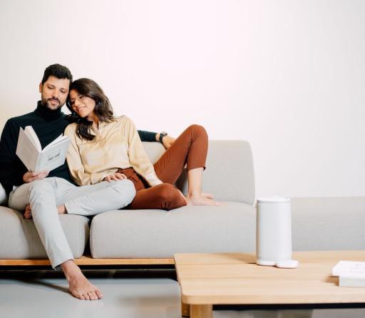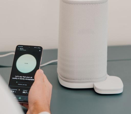 Eteria è un purificatore d'aria compatto e personale con sistema di monitoraggio: monitora la qualità dell'aria interna in ogni stanza ed elimina COV, batteri e odori.
