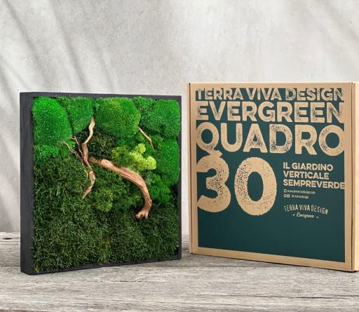 Quadro è un giardino verticale sempreverde, un oggetto artigianale realizzato a mano e composto da muschio stabilizzato ed elementi decorativi in legno. Un elemento decorativo unico, perfetto per arredare con stile le pareti di casa o dell’ufficio, senza bisogno di luce o acqua!