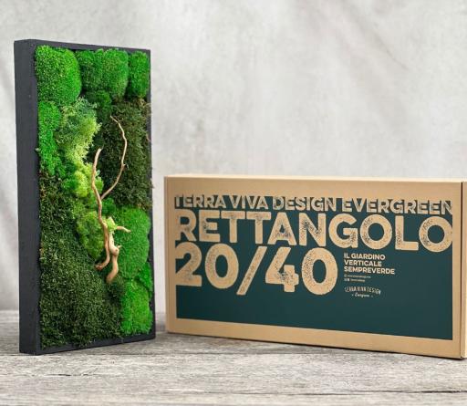 Rettangolo è un giardino verticale sempreverde, un oggetto artigianale realizzato a mano e composto da muschio stabilizzato ed elementi decorativi in legno. Un elemento decorativo unico, perfetto per arredare con stile le pareti di casa o dell’ufficio, senza bisogno di luce o acqua!