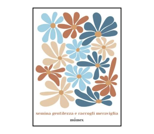 Un poster con 12 adesivi che nascondono esercizi, frasi o domande per aiutarti a portare gentilezza nella tua vita. Il poster interattivo mumex è pensato per chi cerca ispirazione in piccoli gesti quotidiani. Dodici adesivi da scoprire uno alla volta: nascondono esercizi, domande e riflessioni che ti aiutano a trovare positività e motivazione e ti accompagnano in un percorso di crescita. Non solo contenuto, ma anche estetica: grazie al loro design raffinato, i poster mumex portano bellezza e ispirazione nella tua casa.