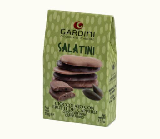 “Salatini” Lingue di cioccolato al latte e fondente con frutti del cappero – Gardini – 100 g