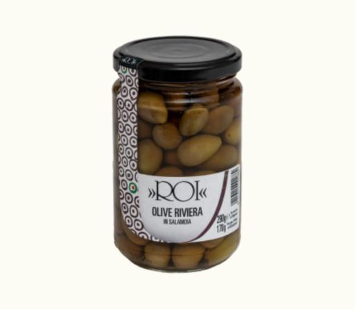 Olive della Riviera in salamoia, piccole e saporite, selezionate con cura in Liguria. Ottime da gustare da sole o in abbinamento a formaggi freschi.