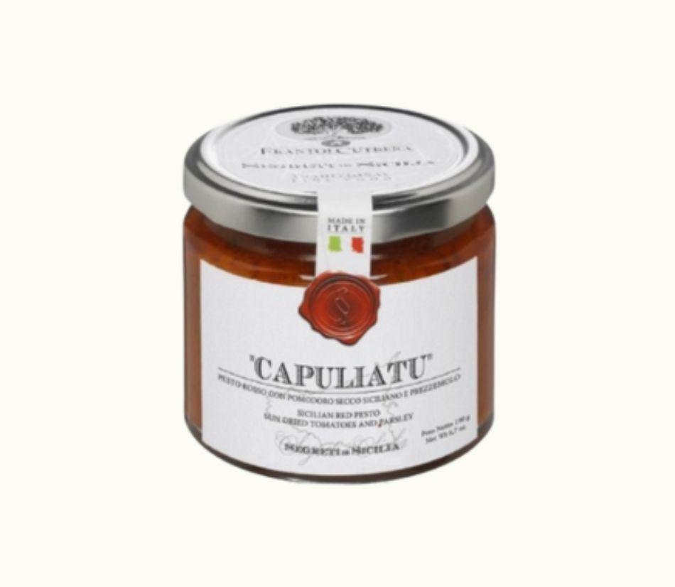 In siciliano, “capuliato” significa macinato: è così che viene lavorato il pomodoro secco, condito con olio e prezzemolo. Un sugo autentico e saporito, ideale per insaporire la pasta.