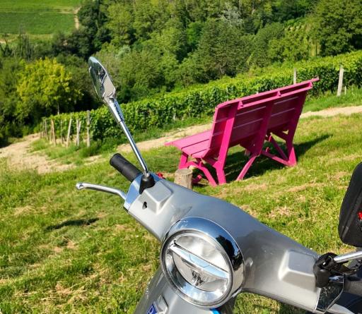 Lasciati incantare dalle meraviglie delle Langhe in un tour indimenticabile in Vespa Elettrica, che ti condurrà attraverso paesaggi mozzafiato e sapori autentici della regione…con sorpresa! Il viaggio inizia da Pollenzo dove sarà consegnata la Vespa. Parti alla scoperta di una serie di tappe incantevoli che attraversano tutta la Langa del Barolo fino a Monforte d'Alba. Qui, relax e una pausa pranzo tutta da vivere: infatti alla cantina "Josetta Saffirio", a Monforte d'Alba, riceverai il kit con tutto l'occorrente per consumare un delizioso pic nic in vigna.