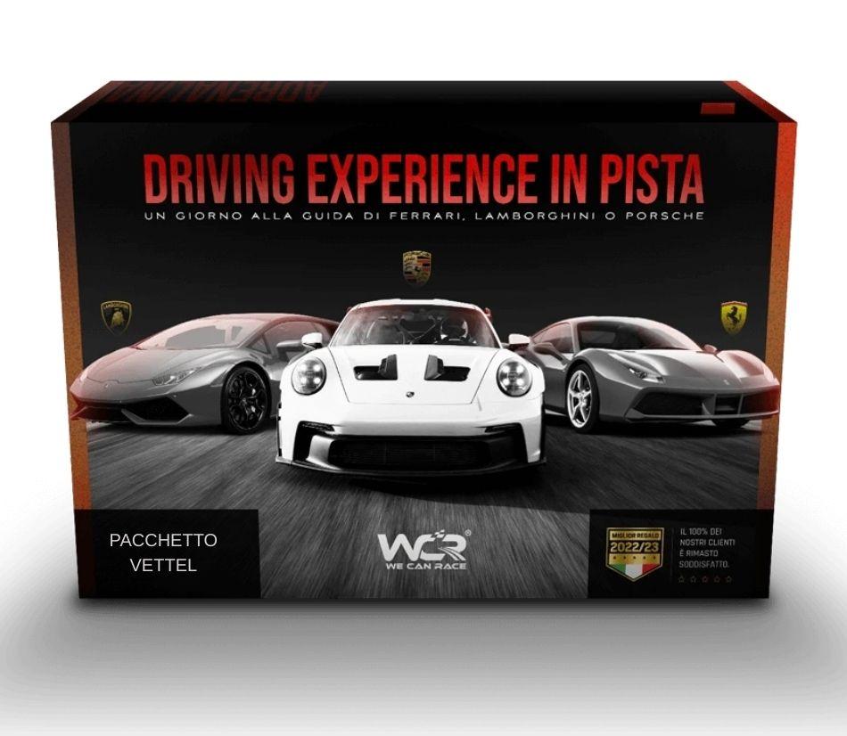 Il Cofanetto digitale “Vettel” è il regalo ideale per chi sogna la velocità: un’esperienza mozzafiato su pista fino a 6 giri con una Supercar a scelta tra Ferrari, Lamborghini, Porsche e molte altre. Libero da vincoli di data, auto e circuito, garantisce massima flessibilità e zero stress nella scelta. Il destinatario potrà decidere se guidare o vivere l’adrenalina da passeggero, scegliendo il circuito in tutta Italia.