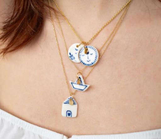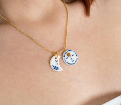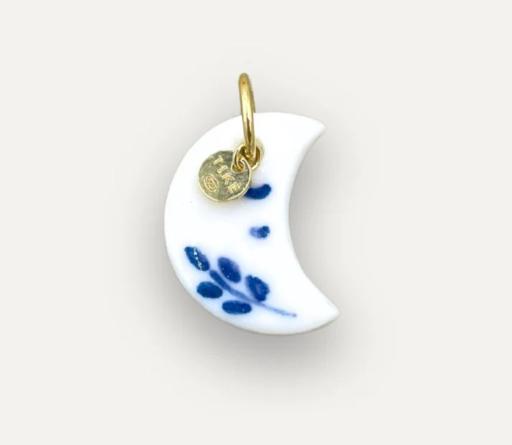Porta con te la magia e il mistero della luna con il Charm Luna, un gioiello artigianale unico. Realizzato in porcellana bianca e decorato a mano con dettagli in ingobbio blu, questo ciondolo è perfetto per chi ama accessori raffinati e dal significato profondo.
