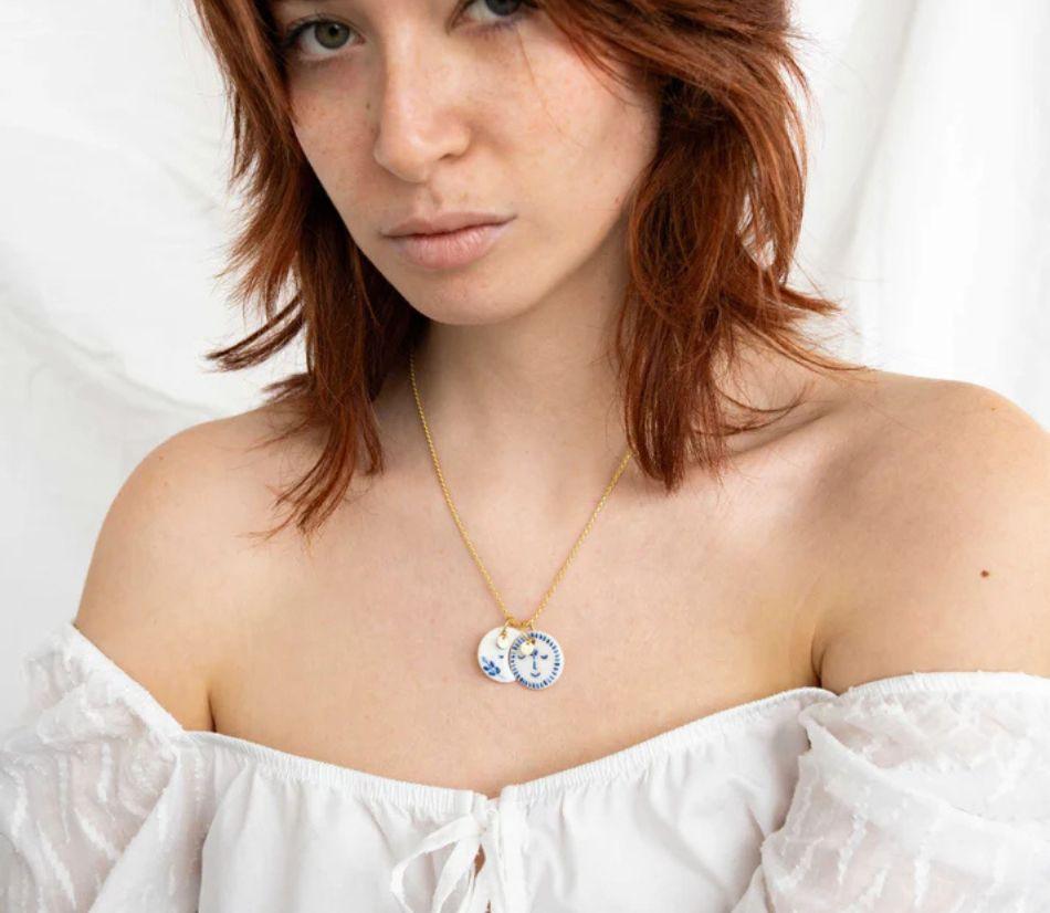 Un piccolo sole da portare sempre con te. Questo charm sole in porcellana bianca, decorato con dettagli in ingobbio blu, nasce da mani pazienti e appassionate. Ogni pezzo è creato con cura, uno alla volta, per trasformarsi in un gioiello unico, fatto per durare e accompagnarti ogni giorno.