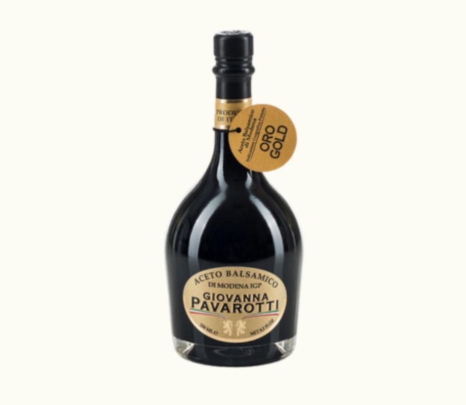 L’aceto balsamico è una specialità gastronomica che per secoli è rimasta un segreto nei solai delle case dei nobili di Modena. Giovanna Pavarotti Oro, di qualità superiore, è corposo e vellutato con profumi balsamici di mosto cotto e legno.