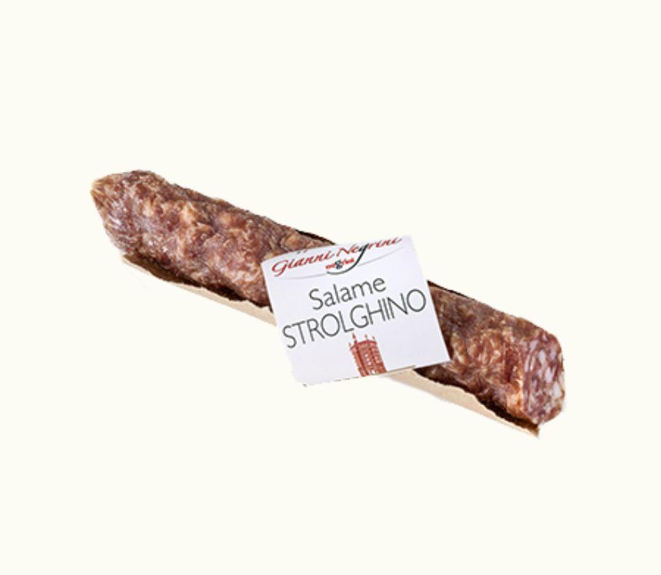 Da 65 anni Negrini produce salumi di qualità nel rispetto della tradizione. Lo strolghino è tipico della bassa parmense: di dimensione più piccola, ha una consistenza compatta e il gusto è delicato.