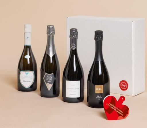Quattro etichette prestigiose per un viaggio frizzante nel cuore delle bollicine italiane. Un dono raffinato per chi ama l’eleganza in ogni sorso.