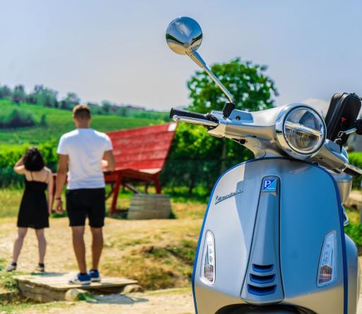 Lasciati incantare dalle meraviglie delle Langhe in un tour indimenticabile in Vespa Elettrica, che ti condurrà attraverso paesaggi mozzafiato e sapori autentici della regione…con sorpresa! Il viaggio inizia da Pollenzo dove sarà consegnata la Vespa. Parti alla scoperta di una serie di tappe incantevoli che attraversano tutta la Langa del Barolo fino a Monforte d'Alba. Qui, relax e una pausa pranzo tutta da vivere: infatti alla cantina "Josetta Saffirio", a Monforte d'Alba, riceverai il kit con tutto l'occorrente per consumare un delizioso pic nic in vigna.