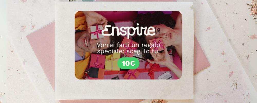 Regalare non è mai stato così semplice: con la Gift Card Enspire da 10€ chi la riceve potrà scegliere tra oltre 500 prodotti ed esperienze uniche presenti sul nostro shop. Un dono speciale che lascia libertà senza essere banale, il passepartout ideale quando vuoi sorprendere senza rischiare di sbagliare il regalo.