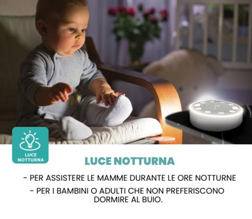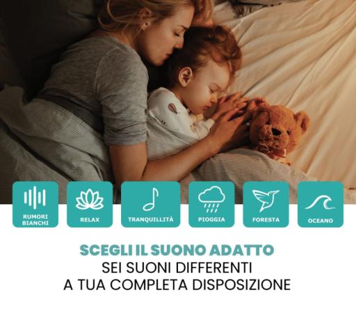 È l’alleata ideale anche per adulti stressati che vogliono staccare la spina con suoni ambient delicati. Elegante, compatta e dotata di batteria ricaricabile, puoi portarla ovunque: in cameretta, in salotto o in valigia.