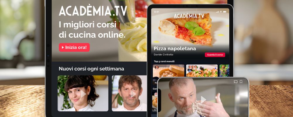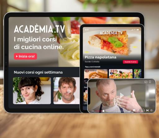 Acadèmia.tv ti offre la possibilità di imparare le tecniche e i segreti dei grandi chef, pizzaioli, pasticcieri, panificatori italiani e internazionali comodamente da casa tua. Potrai accedere a tutti i 200 corsi a disposizione capaci di soddisfare tutte le esigenze per 1 intero anno. Che tu sia un appassionato o voglia partire dalle basi, su Acadèmia.tv troverai il percorso più adatto a te. Professionisti del calibro di Bonci, Knam e Massari ti guideranno passo dopo passo mettendo a disposizione tutto il loro sapere.