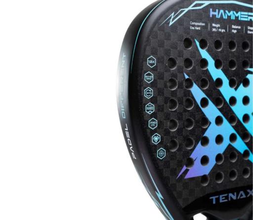 La pala Hammer è una racchetta aggressiva, senza però rinunciare ad un sostegno nella fase difensiva. La forma a diamante e il bilanciamento alto garantiscono infatti un’ottima potenza sugli smash che nella vibora, ma la combinazione di gomma e piatto permettono di gestire ottimamente sia le palle da fondo campo, sia volée nel gioco a rete grazie ad un grande controllo dei colpi.